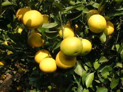 胡柚果实美观,呈梨形,圆球形或扁球形,色泽金黄。单果重300克左右,皮厚约0.6cm,可食率约70%,