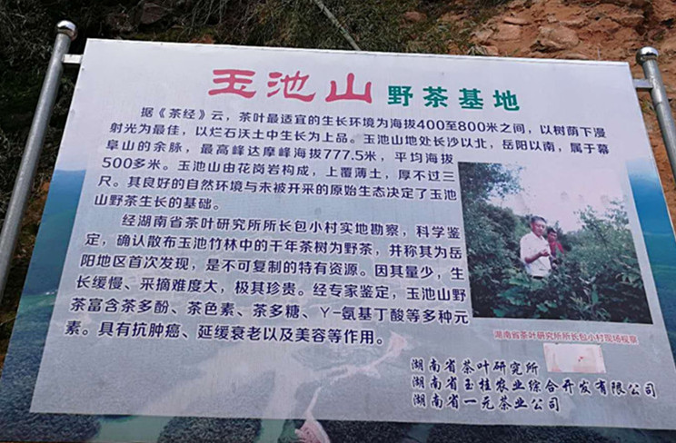 汨罗市玉池国有林场始建立于上世纪60年代,地处长沙已北,岳阳已南,属于幕阜山的余脉,最高峰玉池山海拔695米,平均海拔500多米。全场由玉池山和神鼎山两部分组成,主体玉池山,场部设在主体玉池山西侧中下部,经营总面积11700亩,森林覆盖率达92.3%,森林总蓄积5.89万立方米。林场下设四个分场,一个苗木基地,另辖三个集体组,总人口570人。玉池山由花岗岩构成,上覆薄土,厚不过三尺。其良好的自然环境与未被开采的原始生态决定了玉池山野茶生长的基础。经湖南省茶叶研究所所长包小村实地勘察,科学鉴定,确认散布玉池竹林中的千年茶树为野茶,并称其为岳阳地区首次发现,是不可复制的特有资源。因其量小,生长缓慢、采摘难度大,极其珍贵。经专家鉴定,玉池山野茶富含茶多酚、茶色素、茶多糖、Y-氨基丁酸等多种元素。具有抗肿癌、延缓衰老以及美容等作用。 近年来,林场调整产业结构,大力发展茶叶生产,其中有机茶园80亩,建在海拨500-700米的云山雾海之中,茶园周围林木葱郁,空气清新,方圆8公里内无任何工业污染源,生产环境优美,极适应茶树生长,是理想的茶叶生产基地。为更进一步优化产业结构,增强可持续发展,做大做强有机茶产业,提高茶农收入,结合林场茶产业发展实际,引进高山云雾茶进行示范与推广应用,五年来,通过各方面努力,全面完成了技术示范与推广应用工作,取得了显著成效。