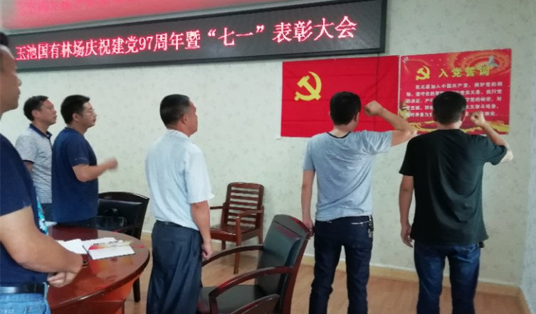 为纪念中国共产党成立97周年,2018年6月30日上午,玉池国有林场召开庆祝建党97周年暨“七一”表彰大会。市林业局党委委员欧进平、全场党员干部共38人参加会议。